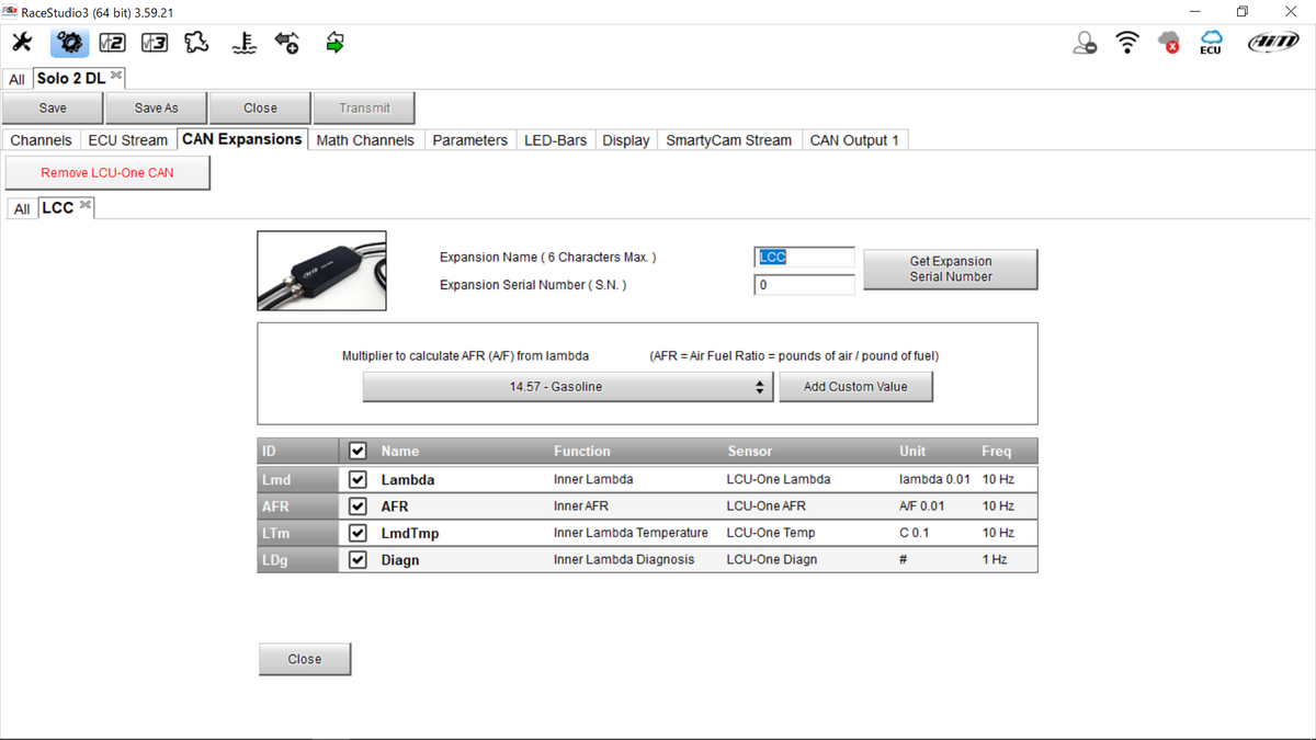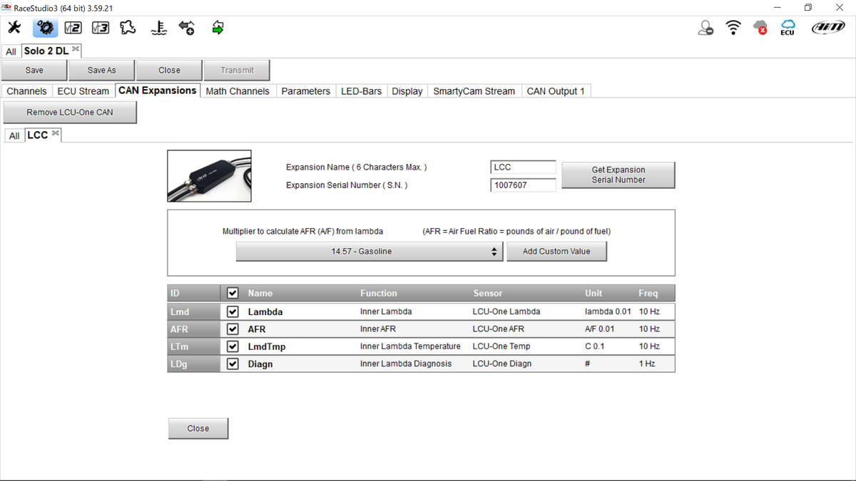 LCU-Oneに12V電源を繋いで、Get Expansion Serial Numberを押せばシリアルナンバーが設定されそうな雰囲気なのですが、設定されなかったので本体から確認して手動で入力しています。