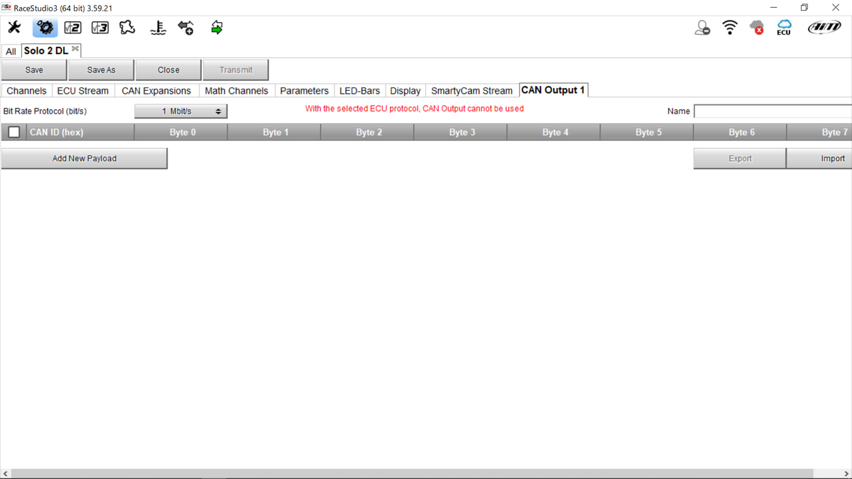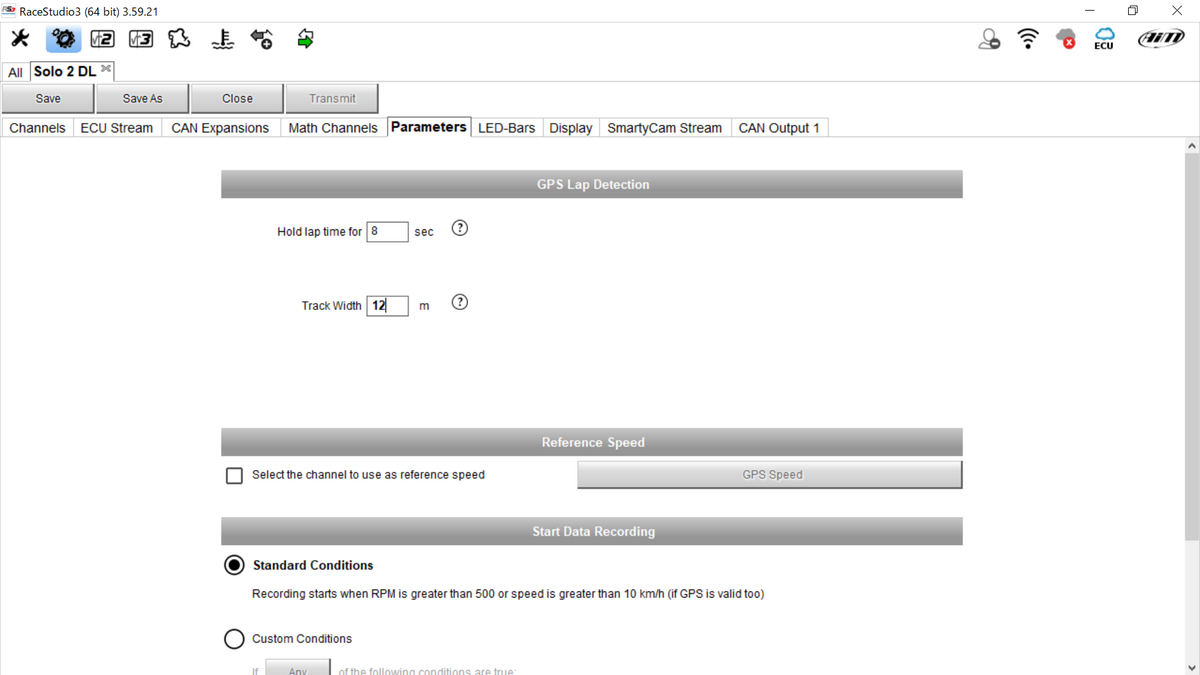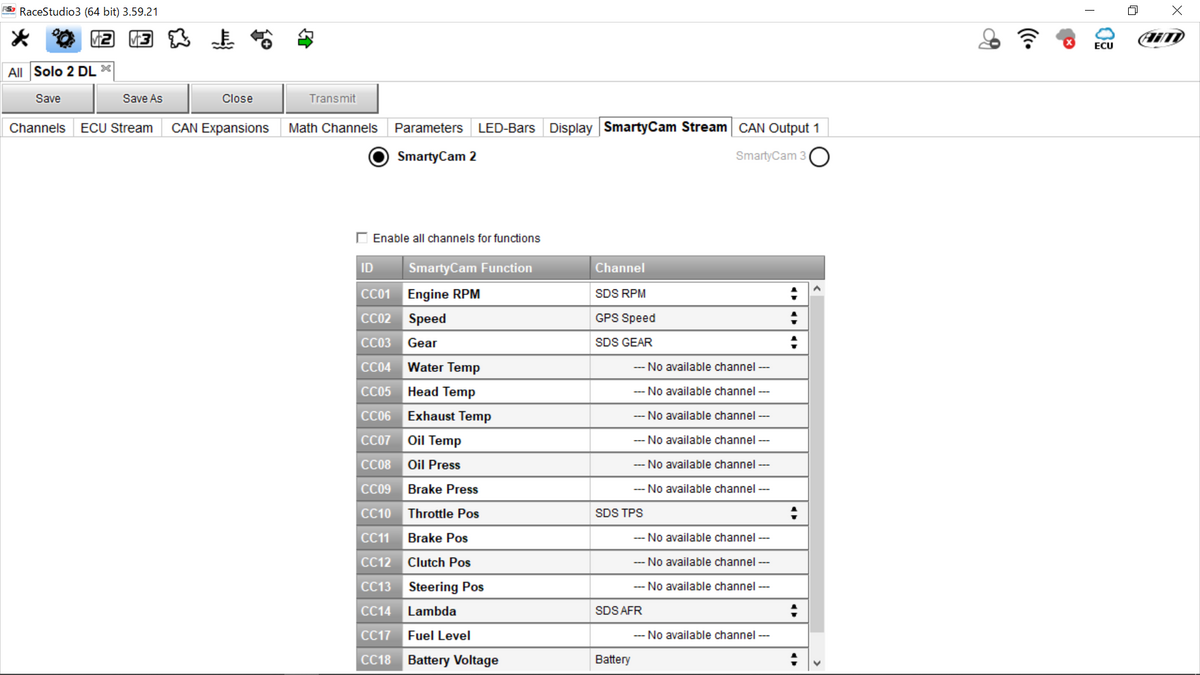 左から2番目のボタンを押下するとSOLO 2DLの設定ができるようになります。