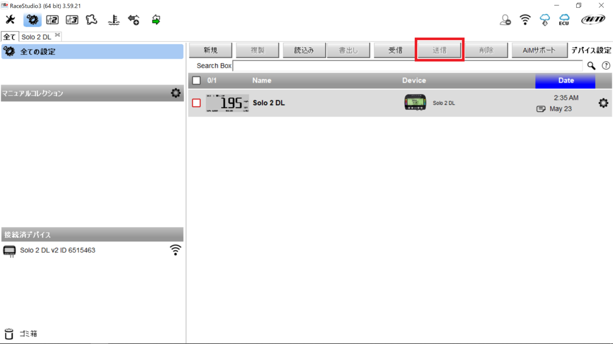 で、現れたSOLO 2 DL v2を選んでみると…送信ボタンが押下できるようになりました!!